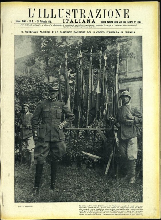 In-4, brossura. In buono stato di conservazione. In questo numero:Il generale Albricci e le gloriose bandiere del II Corpo d'armata in Francia.