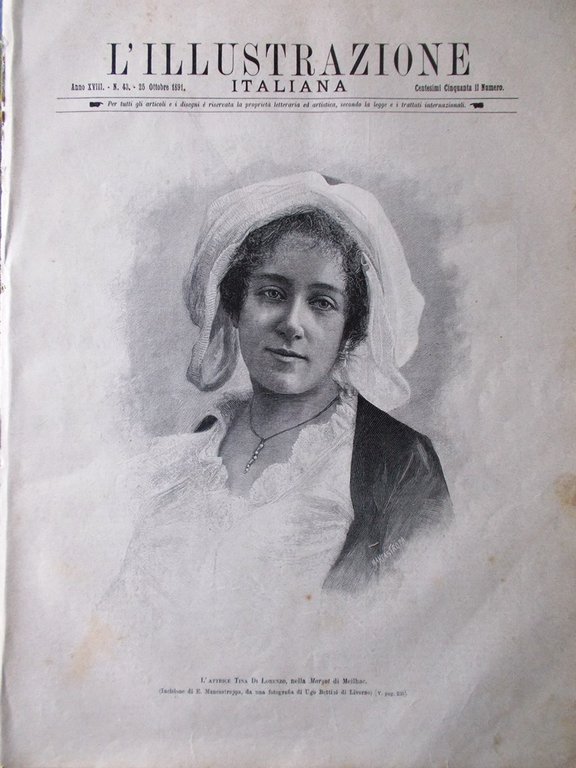 L'Illustrazione Italiana 25 Ottobre 1891 Tina Di Lorenzo Etna Croce Rossa Amicis