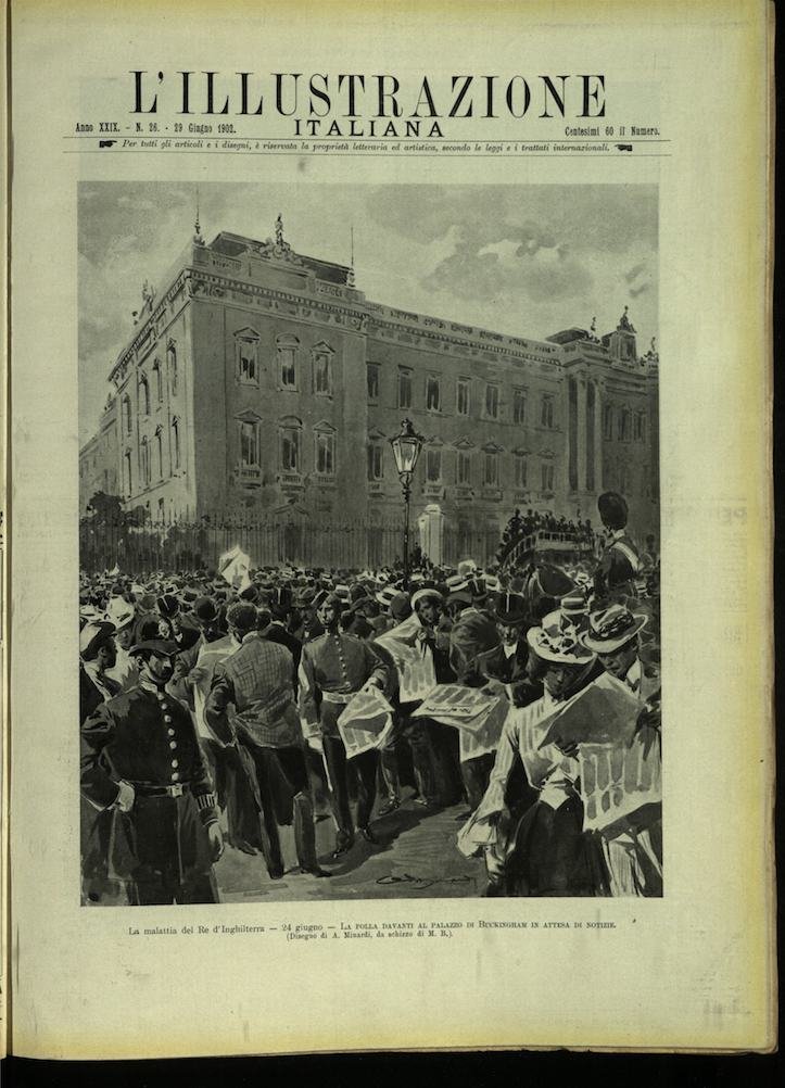 In-4, brossura. In buono stato di conservazione. In questo numero:La malattia del Re d'Inghilterra - 24 giugno - La folla davanti al palazzo di Buckingham in attesa di notizie.