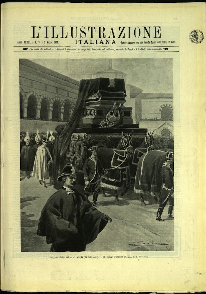 In-4, brossura. In buono stato di conservazione. In questo numero:Il trasporto della salma di Verdi (27 febbraio) - Il carro funebre.