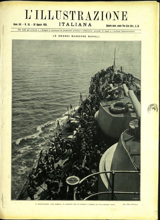 In-4, brossura, mancante delle pagine pubblicitarie ma in buono stato. In questo numero:Le grandi manovre navali.
