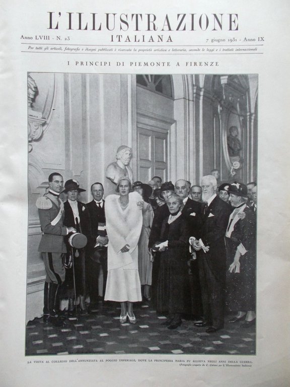 L'illustrazione Italiana 7 Giugno 1931 Piccard Morgagni Pedrocchi Padova Genova