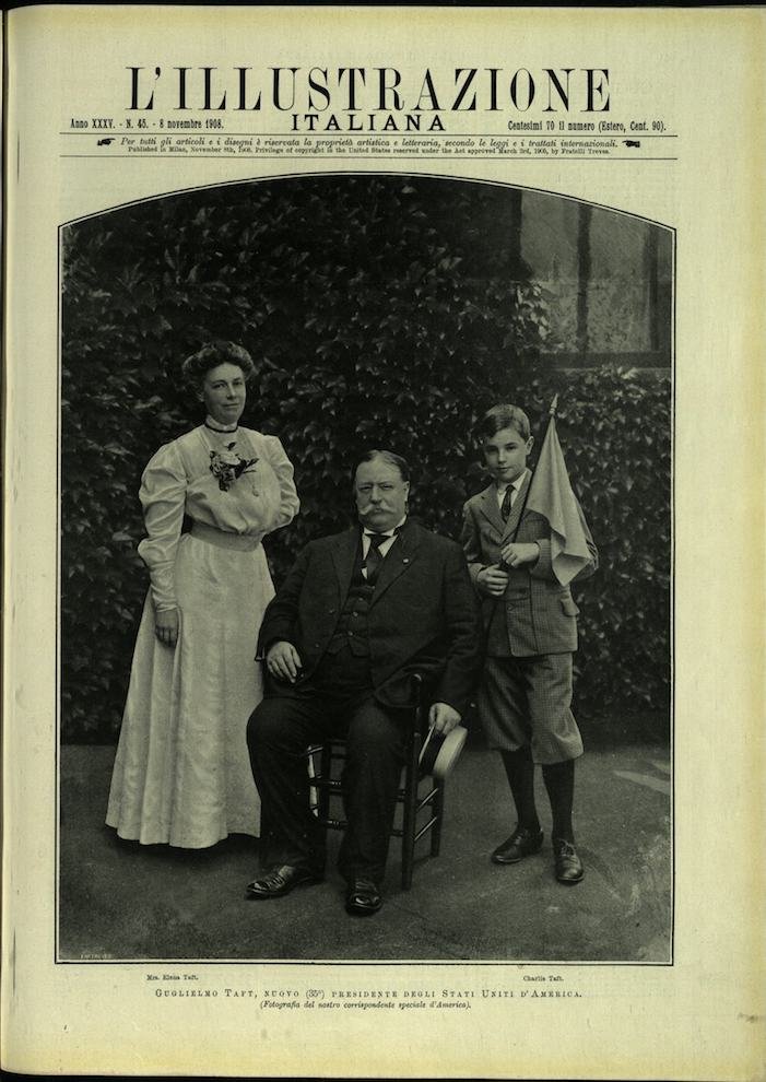 In-4, brossura. In buono stato di conservazione. In questo numero:Guglielmo Taft, nuovo (35°) presidente degli Stati Uniti d'America.