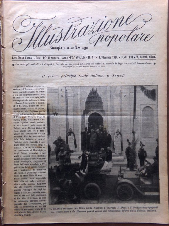 L'Illustrazione Popolare 1 Gennaio 1914 Prelati Goratti Galileo Principe Tripoli