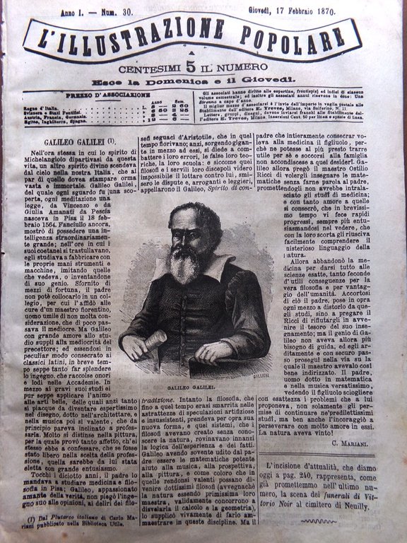 L'illustrazione Popolare 17 Febbraio 1870 Galilei Cattedrale di Strasburgo Rodi