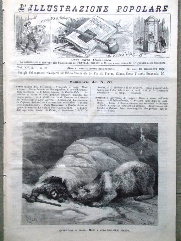 L'illustrazione Popolare 18 Dicembre 1881 Catastrofe Elm Mantegazza Cattaro Pope