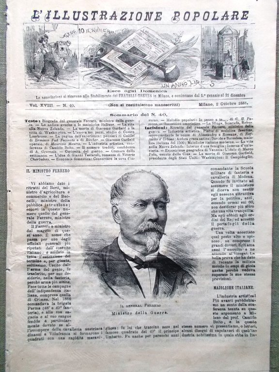 L'illustrazione Popolare 2 Ottobre 1881 Maioliche Nuova Zelanda Garfield Boito