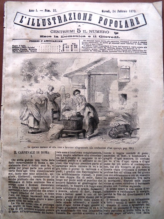 L'illustrazione Popolare 24 Febbraio 1870 Galilei Carnevale Sciopero del Creusot