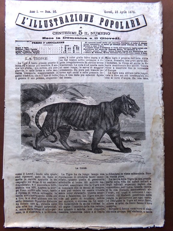L'illustrazione Popolare 28 Aprile 1870 Tigre Malaga Processo di Tours Tortona