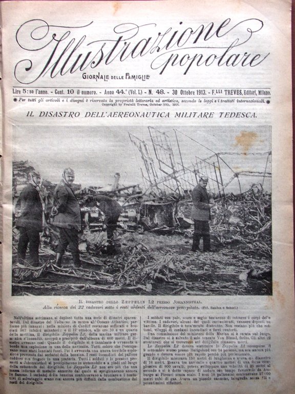 L'Illustrazione Popolare 30 Ottobre 1913 Zeppelin L2 Sighele Shikai Edolo Libia