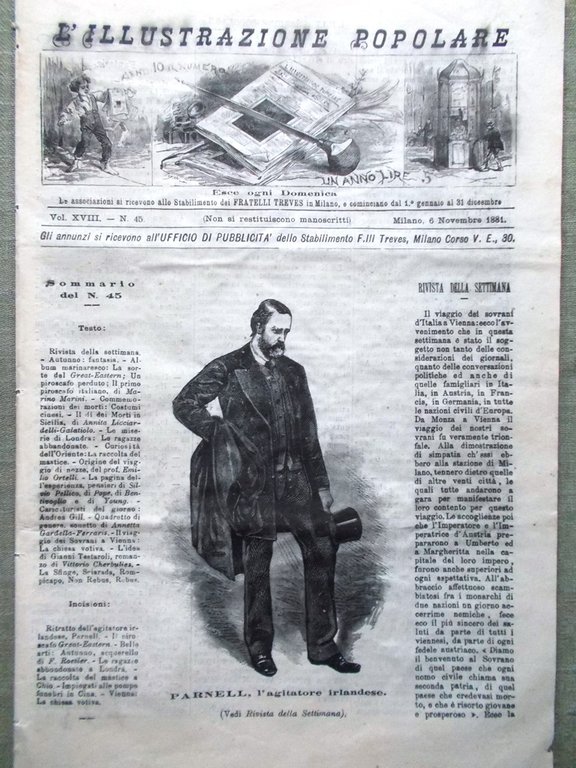 L'illustrazione Popolare 6 Novembre 1881 Parnell Mastice Chio Eastern Vienna Re