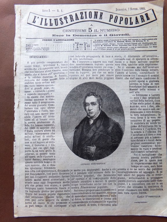 L'illustrazione Popolare 7 Novembre 1869 Primo Numero Stephenson Porto Messina