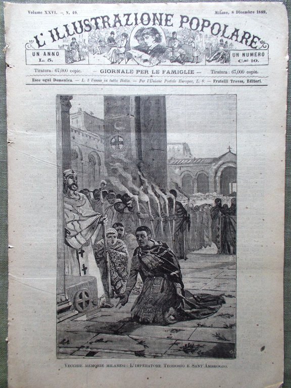 L'illustrazione Popolare 8 Dicembre 1889 Fuoco Sant'Ambrogio Canzone Napoletana