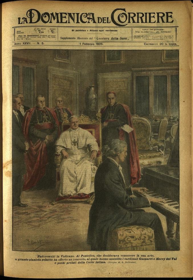 In-4, brossura, in buono stato di conservazione. In questo numero:"Paderewski in Vaticano. Al Pontefice, che desiderava conoscere la sua arte, il grande pianista polacco ha offerto un concerto, al quale hanno assistito i cardinali Gasparri e Merry del Val e pochi prelati della Corte intima.""Una pittoresca festa sulle rive del Gange. Durante tutto il mese di gennaio, gli indiani di tutte le caste, a centinaia di migliaia, si riuniscono a Allahabad, lungo il sacro fiume, per una celebrazione religiosa che consiste in una ininterrotta serie di bagni.".