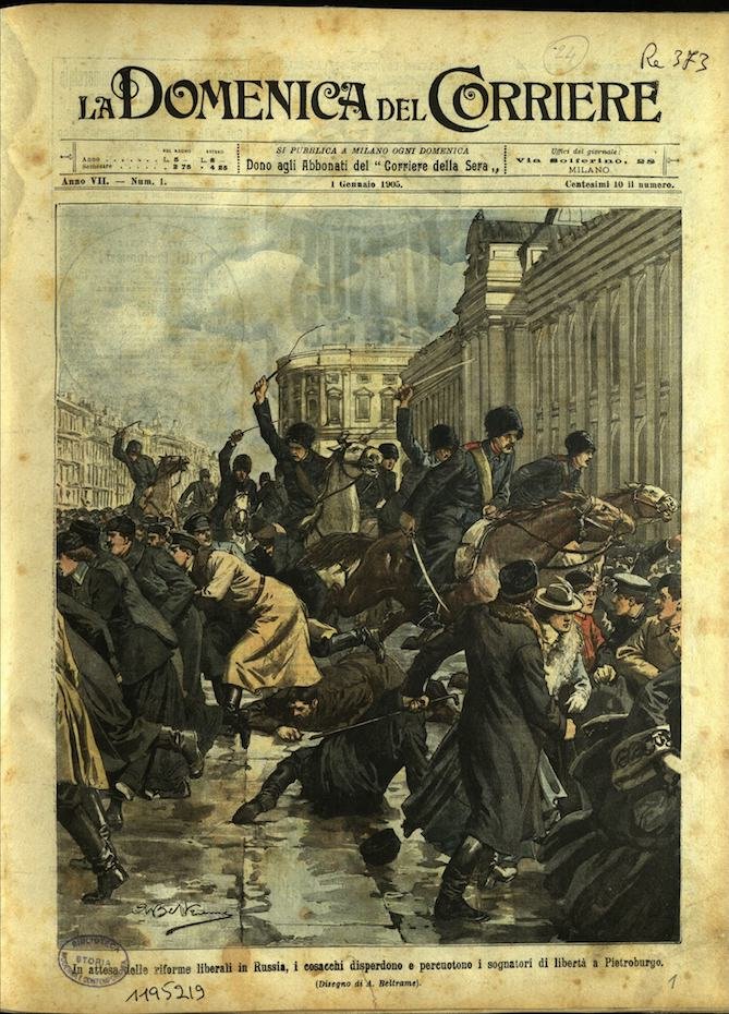 In-4, brossura, in buono stato di conservazione. In questo numero:"In attesa delle riforme liberali in Russia, i cosacchi disperdono e percuotono i sognatori di libertà a Pietroburgo.""Epica lotta fra un caporale russo ed un portabandiera giapponese sul forte della collina dei 203 metri.".