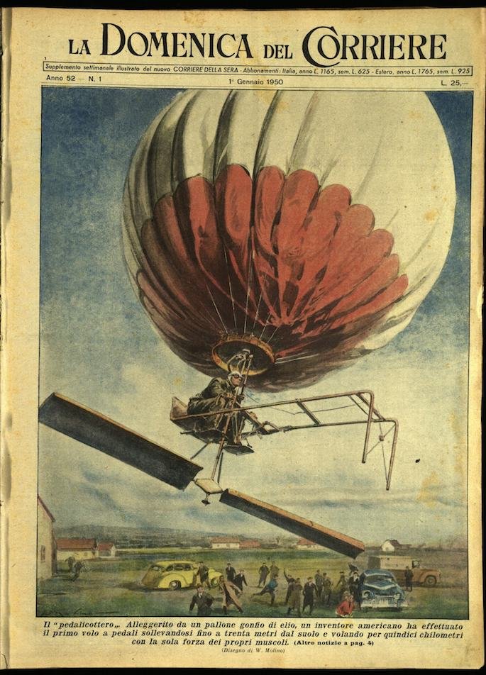 In-4, brossura, in buono stato di conservazione. In questo numero:"Il pedalicottero. Alleggerito da un pallone gonfio di elio, un inventore americano ha effettuato il primo volo a pedali sollevandosi fino a trenta metri dal suolo e volando per quindici chilometri con la sola forza dei propri muscoli.""La ballerina si sposa. Per il matrimonio d'una ballerina inglese, le colleghe di una scuola di danza hanno improvvisato dopo la cerimonia un arco trionfale di nuovo genere..".