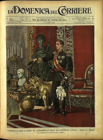 In-4, brossura, in buono stato di conservazione. In questo numero:"La nuova eruzione del vulcano Pelee alla Martinica, la pioggia di cenere e pietre a Fort de France e la fuga della popolazione.""L'assunzione al trono di alfonso XIII, il giuramento di fedelta alla costituzionè avvenuto a madrid il 17 maggio.".