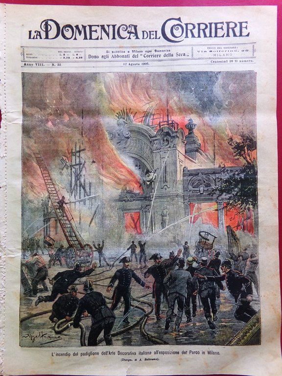 La Domenica del Corriere 12 Agosto 1906 Incendio Esposizione Milano Valanghe Usa