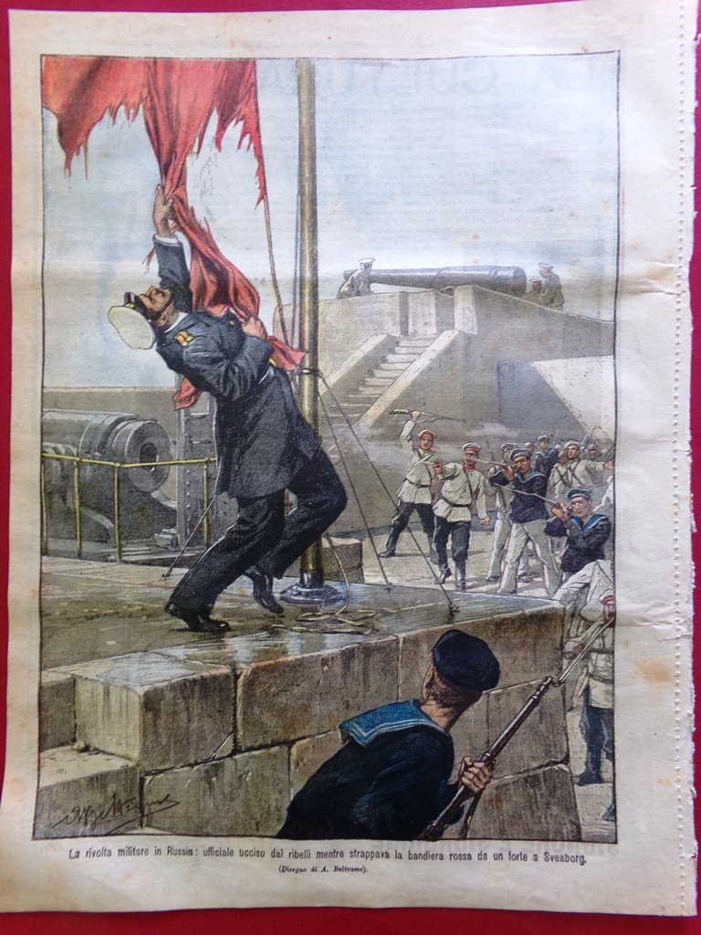 La rivolta militare in Russia: ufficiale ucciso dai ribelli mentre strappava la bandiera rossa da un forte a Sveaborg (Achille Beltrame)