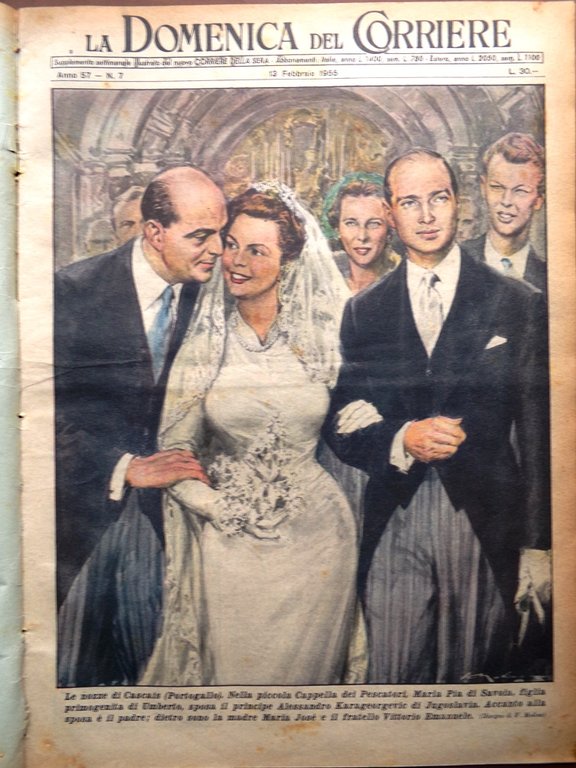 Le nozze di Cascais (Portogallo). Nella piccola Cappella dei Pescatori, Maria Pia di Savoia, figlia primogenita di Umberto, sposa il principe Alessandro Karageorgevic di Jugoslavia (Walter Molino)