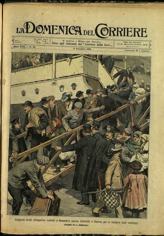 In-4, brossura, in buono stato di conservazione. In questo numero:"Emigranti diretti all'Argentina costretti a discendere appena imbarcati, a Genova, per lo sciopero degli equipaggi.""Emozionante naufragio di un bastimento italiano su le coste della Corsica, e perdita di due mozzi.".