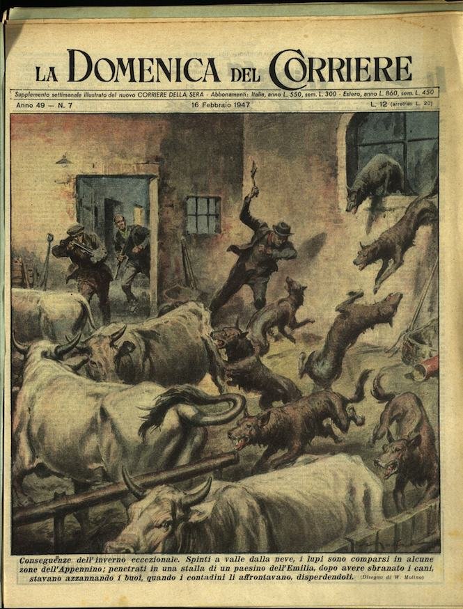 In-4, brossura, in buono stato di conservazione. In questo numero:"Il dramma di un palombaro. Rimasto quasi sepolto sotto le lamiere di una nave in corso di recupero - a molti metri di profondita nel porto di Civitavecchia - un palombaro è stato tratto in salvo, con pericoloso lavoro, dai suoi compagni subito accorsi.""Conseguenze dell'inverno eccezionale. Spinti a valle dalla neve, i lupi sono comparsi in alcune zone dell'Appennino; penetrati in una stalla di un paesino dell'Emilia, dopo avere sbranato i cani, stavano azzannando i buoi, quando i contadini li affrontavano, disperdendoli.".