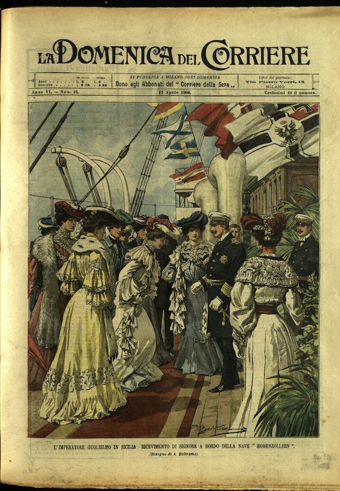 In-4, brossura, in buono stato di conservazione. In questo numero:"L'imperatore Guglielmo in Sicilia, ricevimento di signore a bordo della nave Hohenzollern.""Arrivo in Giappone dei resti mortali del comandante Hirose, un eroe sacrificatosi a Porto Arturo.".