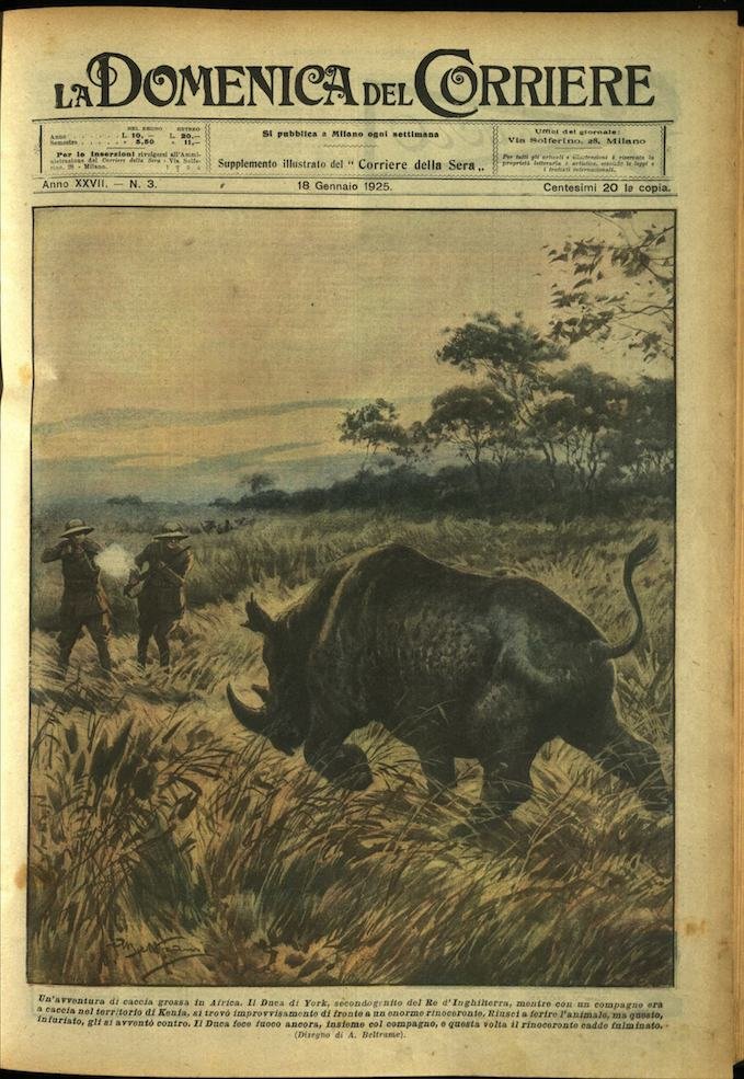 In-4, brossura, in buono stato di conservazione. In questo numero:"Contro la follia della velocita. A Los Angeles (California), gli automobilisti rei di eccesso di velocità vengono inseguiti da agenti forniti di motocicletta e perfino.. di un robusto gabbione per gli arrestati.""Un'avventura di caccia grossa in Africa. Il Duca di York, secondogenito del Re d'Inghilterra, mentre con un compagno era a caccia nel territorio di Kenia, si trovo improvvisamente di fronte a un enorme rinoceronte. Riusci a ferire l'animale, ma questo, infuriato, gli si avvento contro. Il Duca fece fuoco ancora, insieme col compagno, e questa volta il rinoceronte cadde fulminato.".