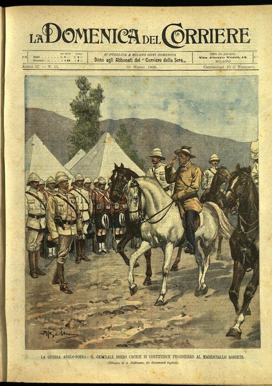 In-4, brossura, in buono stato di conservazione. In questo numero:"La guerra anglo-boera, il generale boero Cronje si costituisce prigioniero al maresciallo Roberts.""Scoperta d'una bisca a Firenze, le guardie di P. S. invadono la sala di giuoco.".