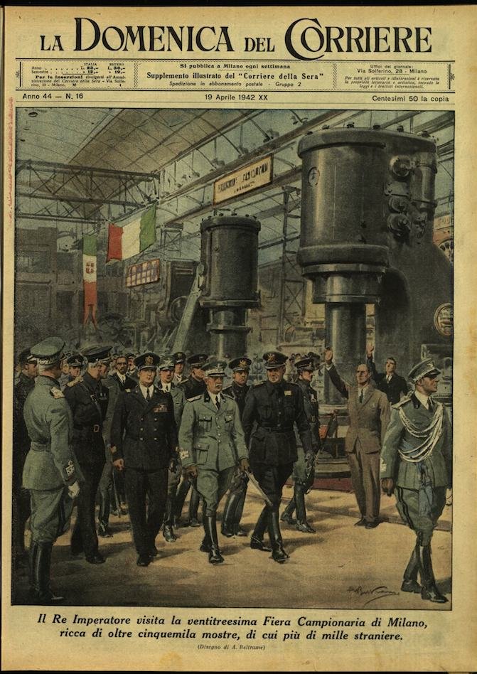 In-4, brossura, in buono stato di conservazione. In questo numero:"Il Re Imperatore visita la ventitreesima Fiera Campionaria di Milano, ricca di oltre cinquemila mostre, di cui più di mille straniere.""Il battesimo dell'Equatore, a bordo di un sommergibile tedesco nell'Oceano Atlantico. Secondo una vecchia usanza marinara, al passaggio della linea dell'Equatore i marinai più giovani ricevono il battesimo, che consiste in una buffa insaponatura alla presenza di.. Nettuno, armato del tradizionale tridente, e della sua sposa. Finita l'allegra cerimonia, ognuno torna al proprio posto di vigilanza.".