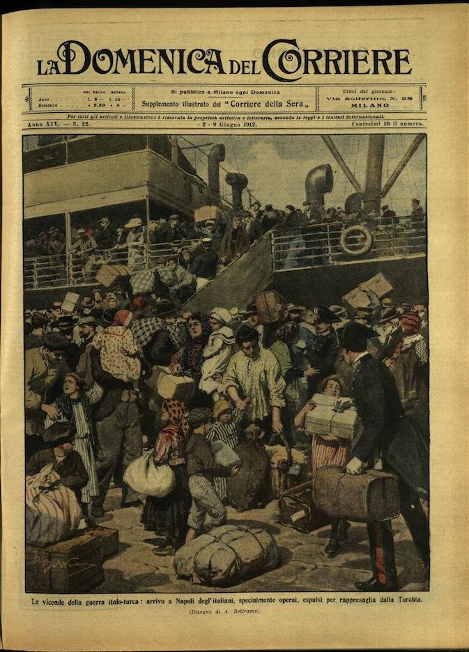 In-4, brossura, in buono stato di conservazione. In questo numero:"Le vicende della guerra italo-turca, arrivo a Napoli degl'italiani, specialmente operai, espulsi per rappresaglia dalla Turchia."La tragica rivolta operaia per il suffragio universale a Budapest...