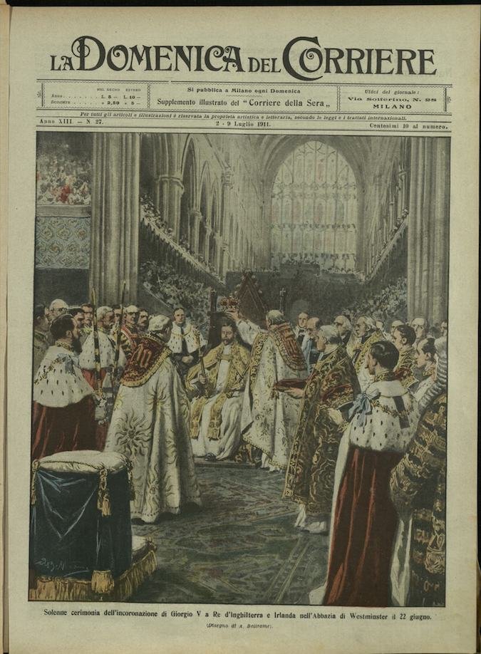 In-4, brossura, in buono stato di conservazione. In questo numero:"Fra il Re e un vignarolo di Palombara Sabina, E lei, scusi, Sua Maesta il Re d'Italia?""Solenne cerimonia dell'incoronazione di Giorgio V a Re d'inghilterra e Irlanda nell'Abbazia di Westminster il 22 giugno.".