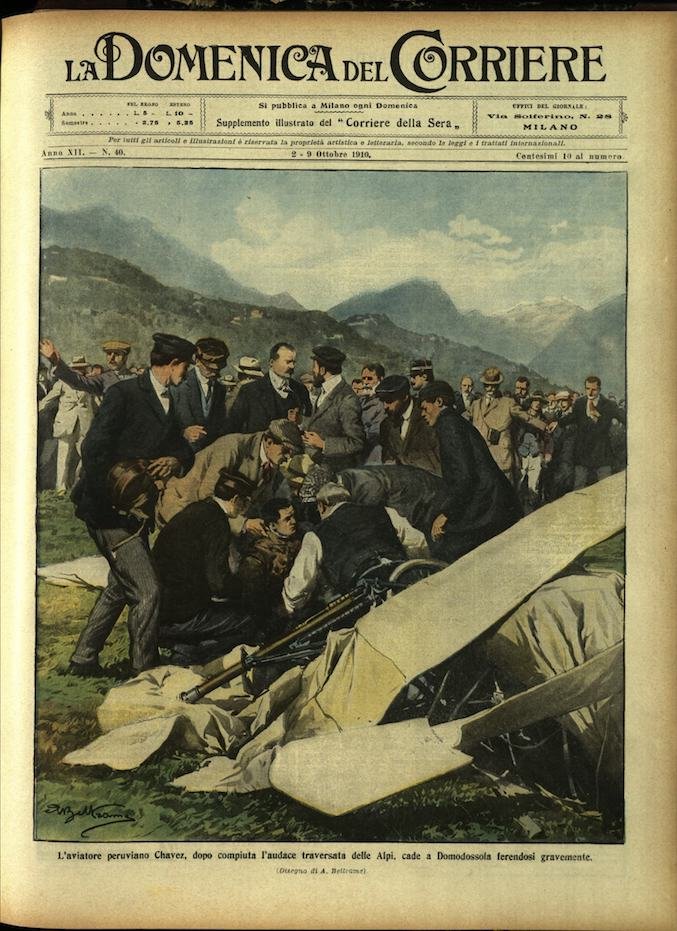 In-4, brossura, in buono stato di conservazione. In questo numero:"La meraviglia del giorno, due aeroplani volano per la prima volta su l'estrema guglia, alta 109 metri, del Duomo di Milano.""L'aviatore peruviano Chavez, dopo compiuta l'audace traversata delle Alpi, cade a Domodossola ferendosi gravemente.".