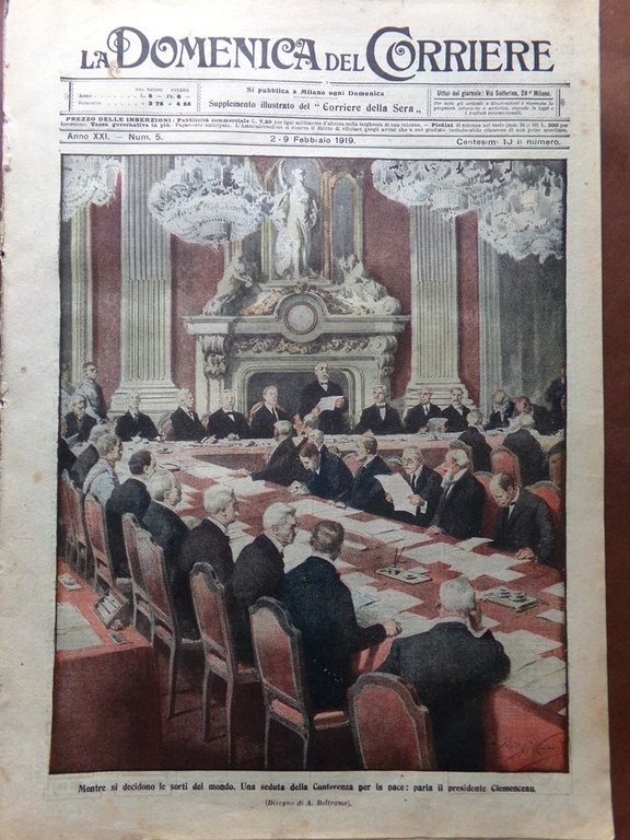 La Domenica del Corriere 2 Febbraio 1919 Conferenza Pace Epidemie Trulin Filzi