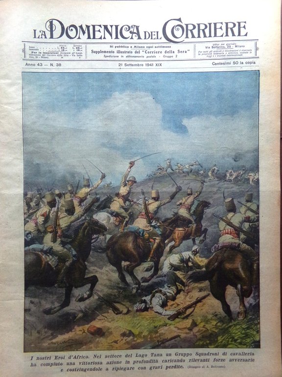 I nostri Eroi d'Africa. Nel settore del Lato Tana un Gruppo Squadroni di cavalleria ha compiuto una vittoriosa azione in profondit caricando rilevanti forze avversarie e costringendole a ripiegare con gravi perdite (Achille Beltrame)
