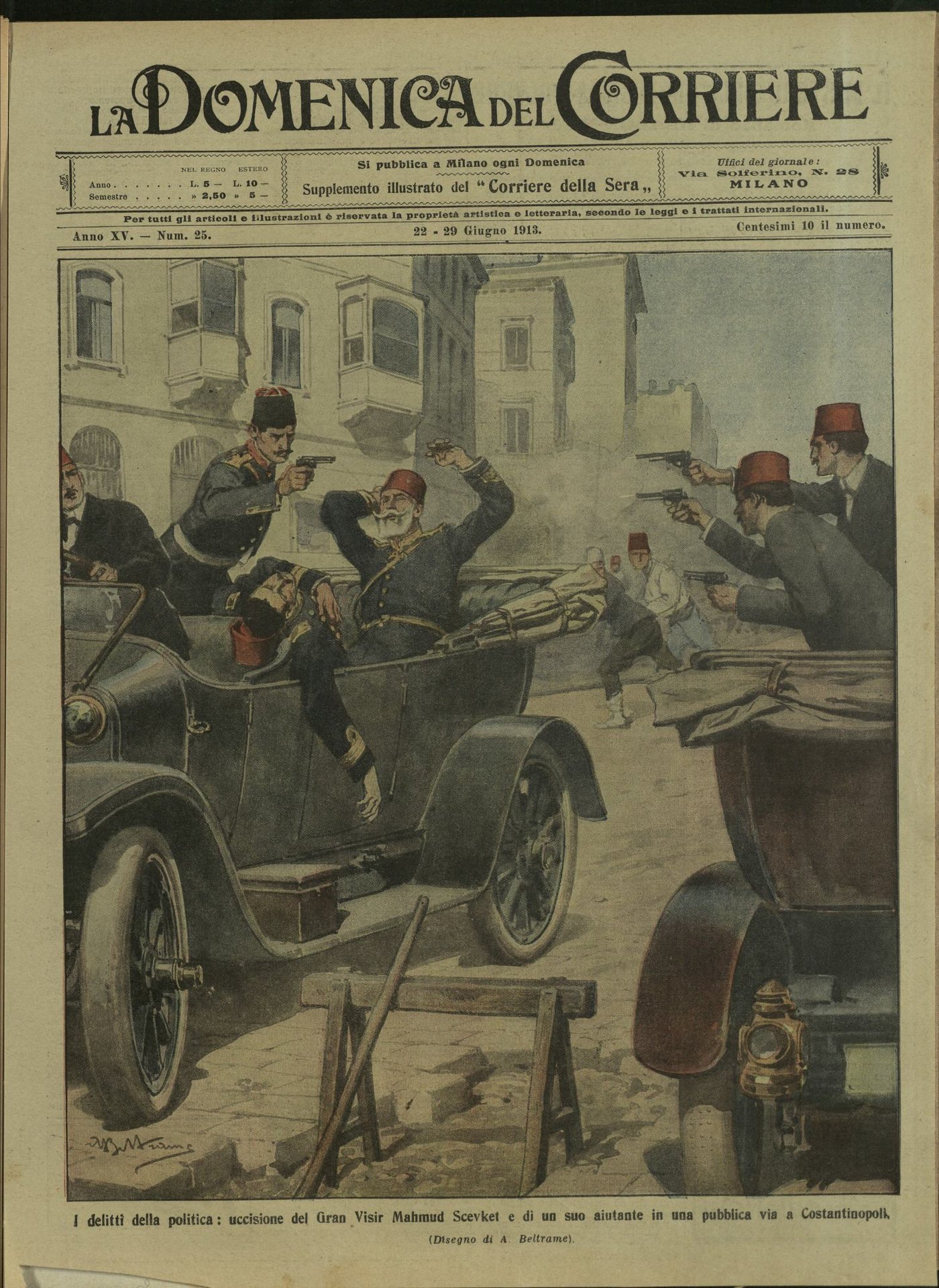 In-4, brossura, in buono stato di conservazione. In questo numero:"Guglielmo II assiste alle feste inaugurali dell'ospizio per bimbe deboli da lui fondato ad Ahlbeck a ricordo del suo giubileo.""I delitti della politica, uccisione del Gran Visir Mahmud Scevket e di un suo aiutante in una pubblica via a Costantinopoli.".