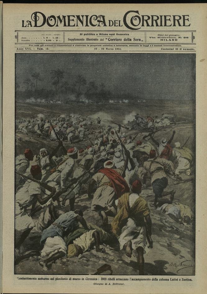 In-4, brossura, in buono stato di conservazione. In questo numero:"Combattimento notturno nel plenilunio di marzo in Cirenaica, 2000 ribelli attaccano l'accampamento della colonna Latini a Zuetina.""Le aberrazioni del suffragismo femminile, suffragetta che taglia a colpi di coltello la Venere di Velasquez nella Galleria di Londra.".