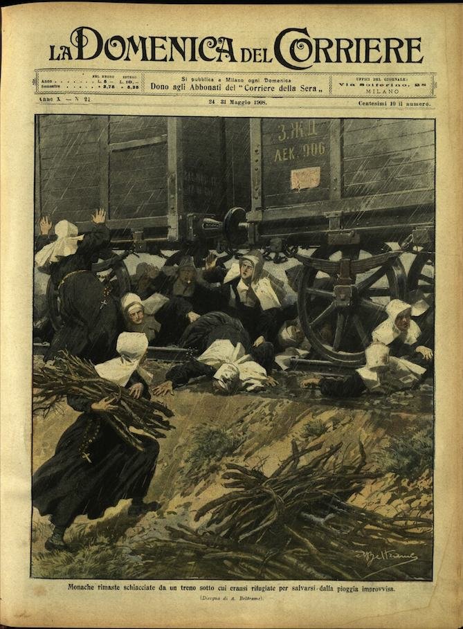 In-4, brossura, in buono stato di conservazione. In questo numero:"Monache rimaste schiacciate da un treno sotto cui eransi rifugiate per salvarsi dalla pioggia improvvisa.""L'ultimo scandalo mondano, gli audaci abbigliamenti muliebri teste comparsi in pubblico a Parigi.".