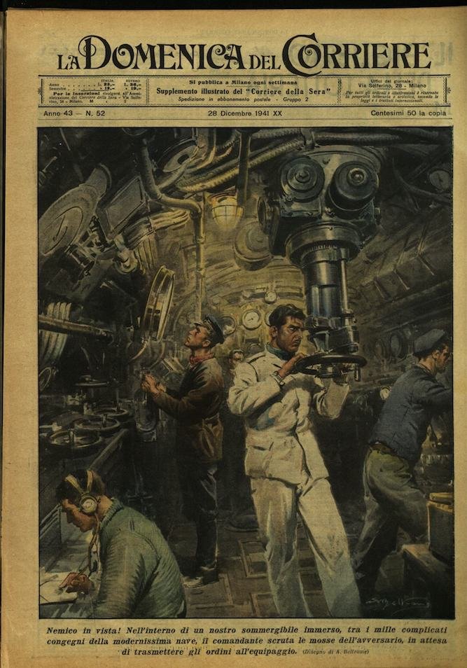 In-4, brossura, in buono stato di conservazione. In questo numero:Nemico in vista. Nell'interno di un nostro sommergibile immerso, tra i mille complicati congegni della modernissima nave, il comandante scruta le mosse dell'avversario, in attesa di trasmettere gli ordini all'equipaggio."Nella loro marcia lungo i fiumi che attraversano le immense foreste della Malesia, verso Singapore, le forze giapponesi hanno incontrato masse di coccodrilli. In alcune zone paludose infestate da quei rettili, i soldati hanno dovuto proteggere i genieri che costruivano ponti per l'avanzata, sparando sui minacciosi animali.".