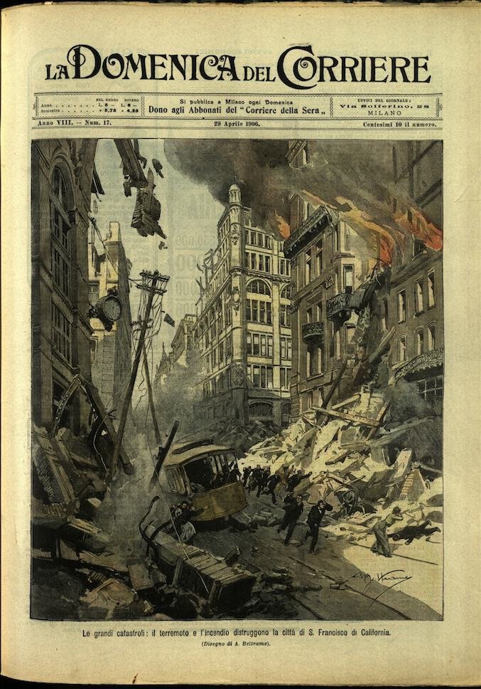 In-4, brossura, in buono stato di conservazione. In questo numero:"L'Esposizione internazionale di Milano, l'esterno del salone dei festeggiamenti, al Parco.""Le grandi catastrofi, il terremoto e l'incendio distruggono la città di S Francisco di California.".