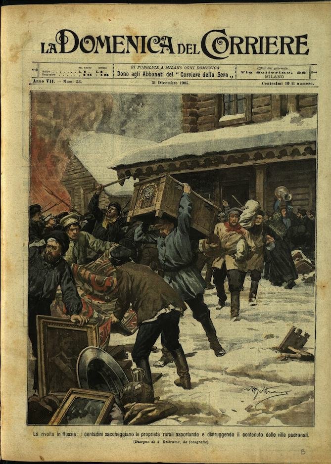 In-4, brossura, tracce d'uso. In questo numero:"Triste Natale in Calabria nei paesi danneggiati dal terremoto.""La rivolta in Russia, i contadini saccheggiano le proprieta rurali asportando e distruggendo il contenuto delle ville padronali.".