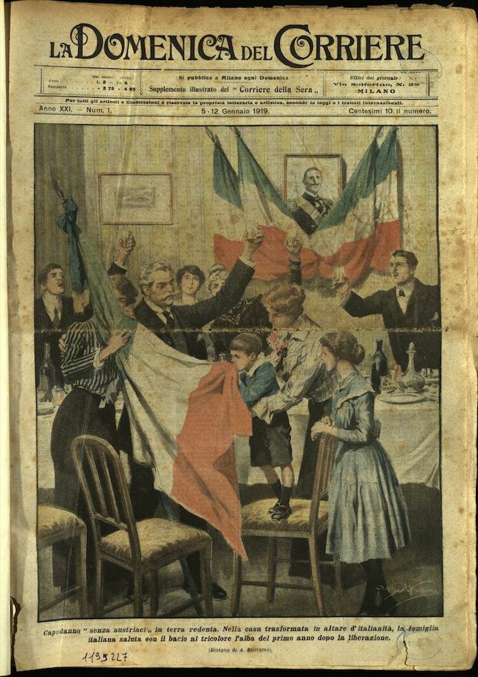 In-4, brossura, in buono stato di conservazione. In questo numero:"I trofei della vittoria. Cento cannoni austriaci sono stati esposti in Piazza Venezia a Roma.""Capodanno. senza austriaci in terra redenta. Nella casa trasformata in altare d'italianita, la famiglia italiana saluta con il bacio al tricolore l'alba del primo anno dopo la liberazione.".