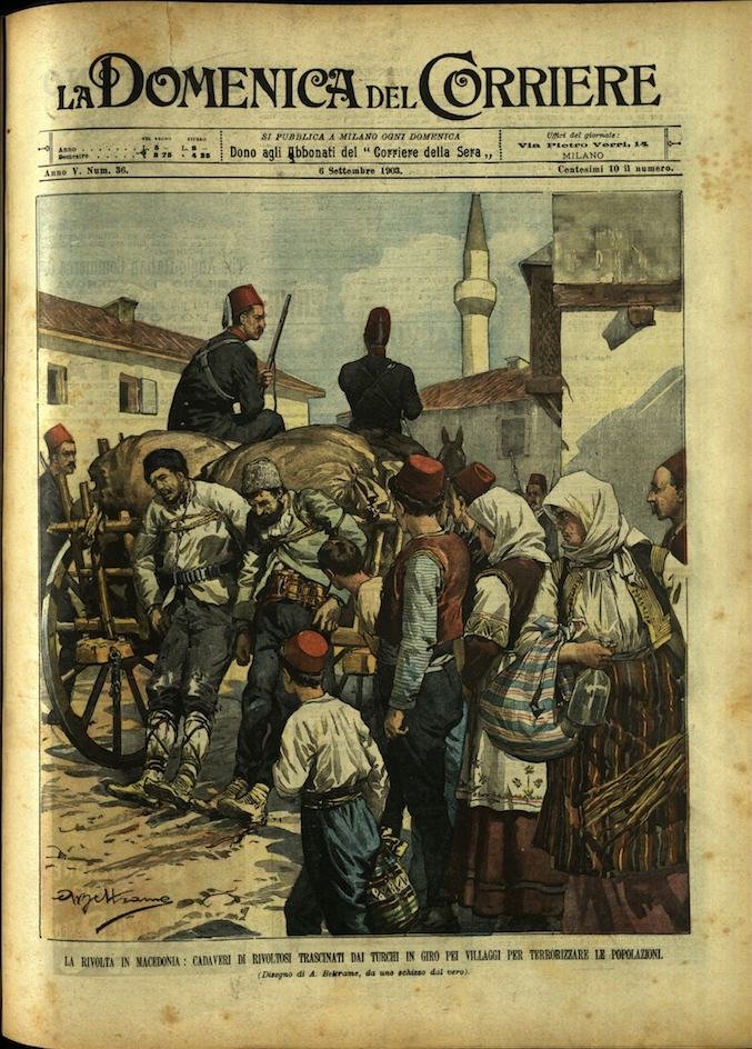 In-4, brossura, in buono stato di conservazione. In questo numero:"La rivolta in Macedonia, cadaveri di rivoltosi trascinati dai turchi in giro pei villaggi per terrorizzare le popolazioni.""Il drammatico incendio del magasin parisien di budapest, impiegati e compratori si gettano dalle finestre nella kerepesi ut.".