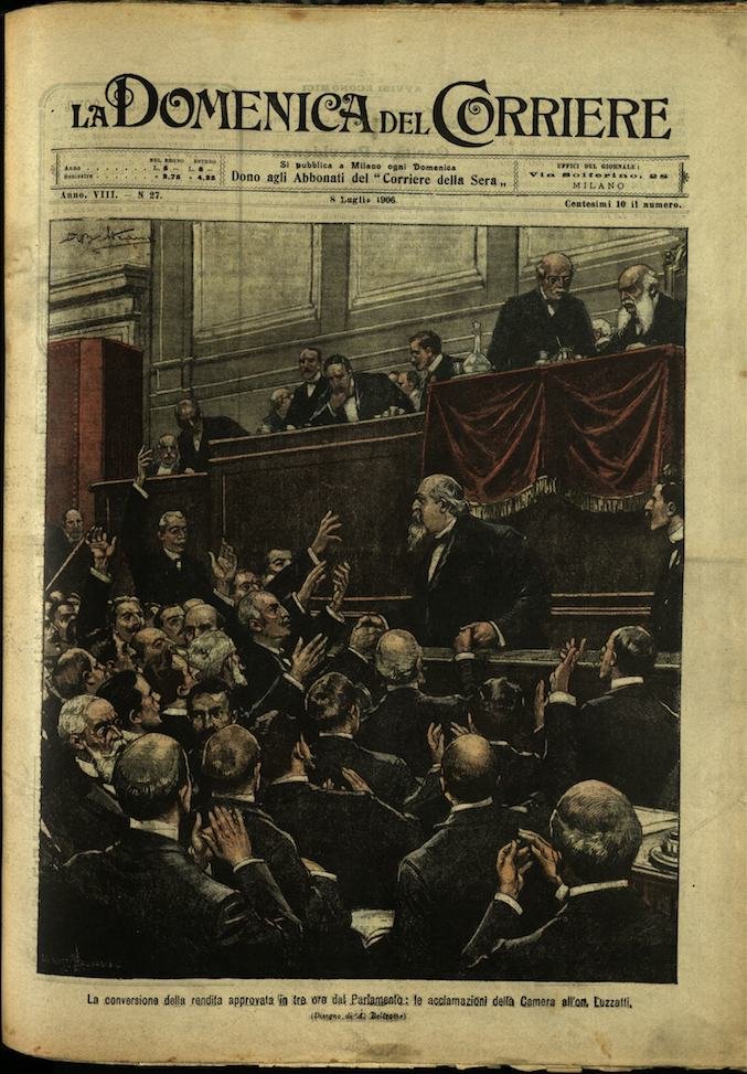 In-4, brossura, in buono stato di conservazione. In questo numero:"Nubifragio a Berlino, cavalli, artiglieri e cannoni che affogano nel fango.""La conversione della rendita approvata in tre ore dal Parlamento, le acclamazioni della Camera all'on Luzzatti.".