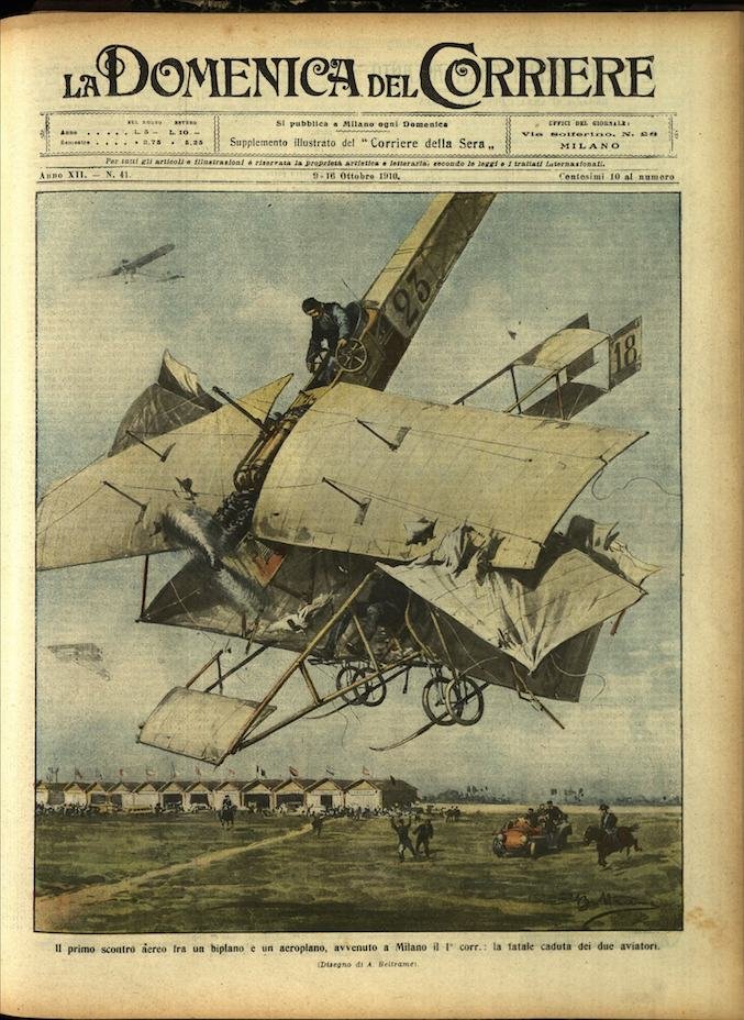 .In-4, brossura (mancanze al dorso), in buono stato di conservazione. In questo numero:"Il primo scontro aereo fra un biplano e un aeroplano, avvenuto a Milano il 1° corr, la fatale caduta dei due aviatori.""I delitti dell'ignoranza, il popolo di Molfetta distrugge un carro di disintettanti destinati ad impedire la diffusione del colera.".