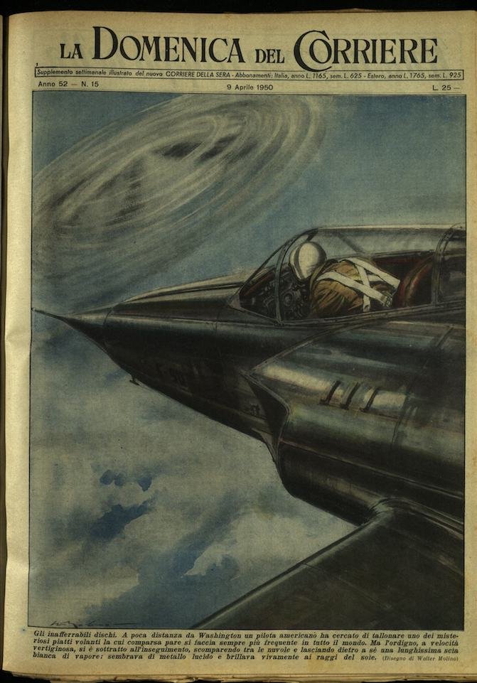 In-4, brossura, in buono stato di conservazione. In questo numero:"Salvato al volo. In una casa popolare di via San Mamolo a Bologna, un bimbo di quattordici mesi, infilatosi tra le sbarre della ringhiera, e precipitato dal secondo piano giù per la tromba delle scale. Si sarebbe sfracellato se un ragazzetto, Alessandro Melega, che stava salendo, non avesse avuto la presenza di spirito e il coraggio di tendere le braccia e di afferrare fulmineamente il bimbo; il quale non si è fatto neanche una scalfittura.""Gli inafferrabili dischi. A poca distanza da Washington un pilota americano ha cercato di tallonare uno dei misteriosi piatti volanti la cui comparsa pare si faccia sempre più frequente in tutto il mondo. Ma l'ordigno, a velocità vertiginosa, si è sottratto all'inseguimento, scomparendo tra le nuvole e lasciando dietro a sé una lunghissima scia bianca di vapore, sembrava di metallo lucido e brillava vivamente ai raggi del sole.".