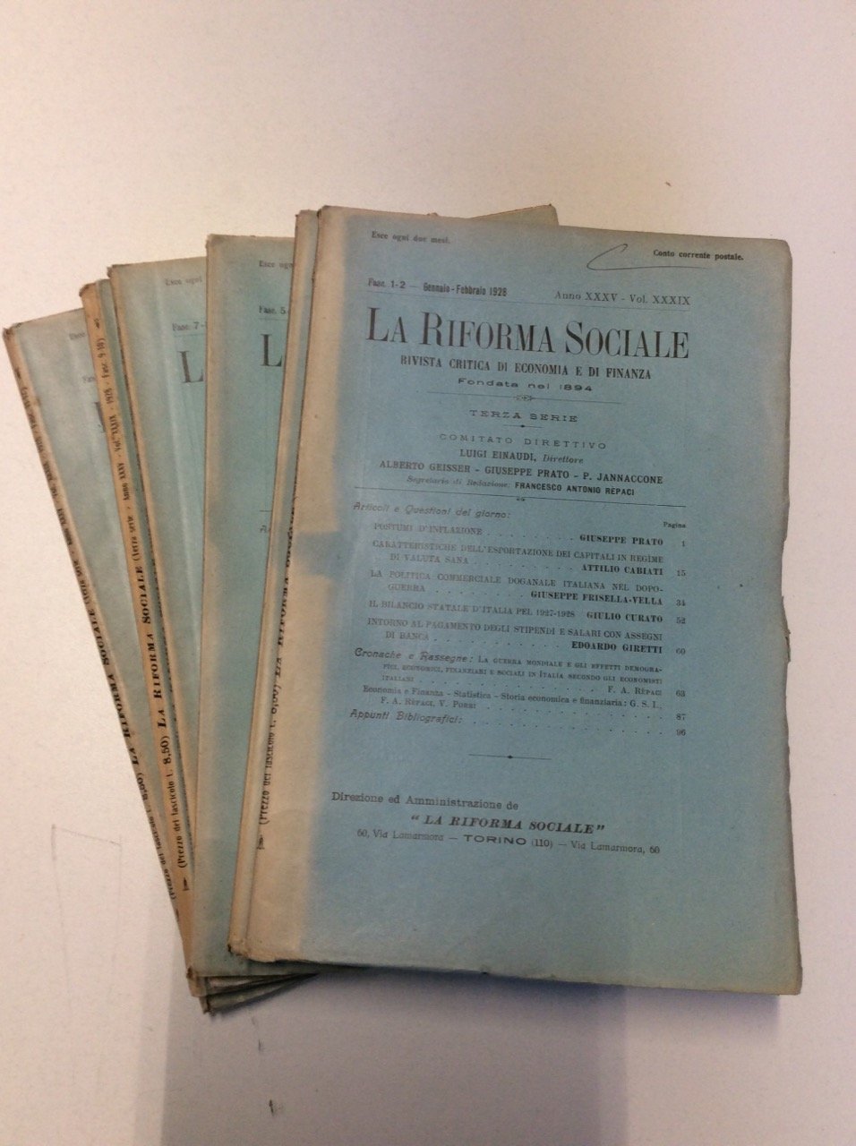 LA RIFORMA SOCIALE. RIVISTA CRITICA DI ECONOMIA E DI FINANZA. ANNATA 1928. | Périodiques |