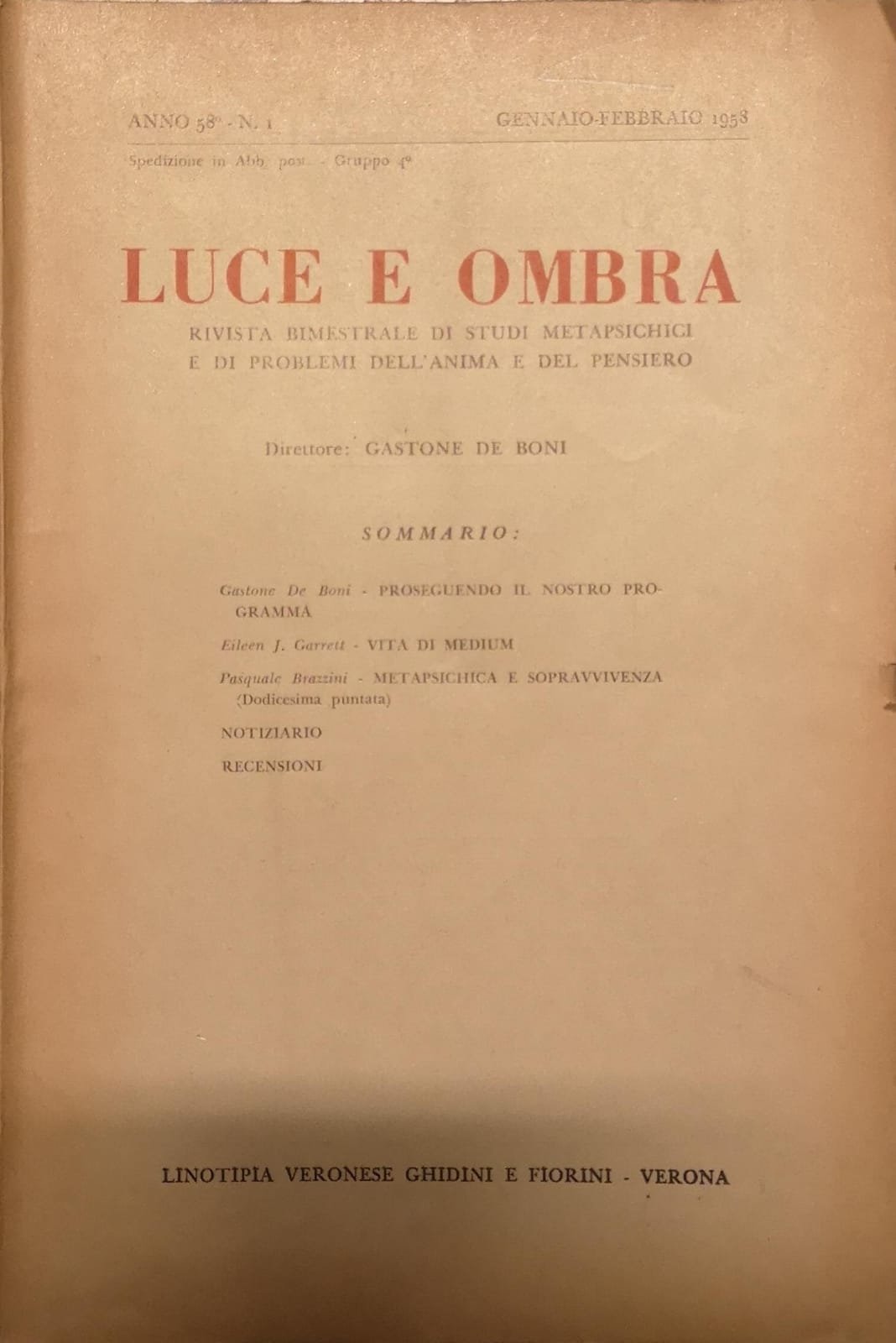 LUCE E OMBRA. - Rivista bimestrale di studi metapsichici e di problemi dell'anima e del pensiero.