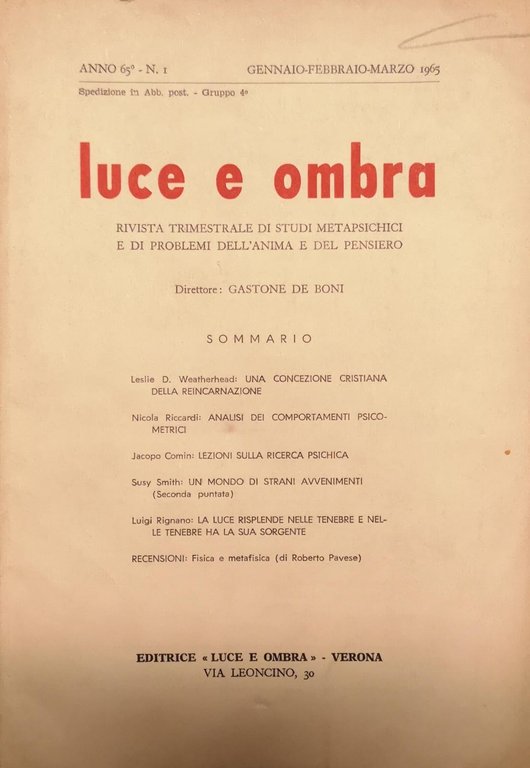 LUCE E OMBRA. - Rivista trimestrale di studi metapsichici e di problemi dell'anima e del pensiero.