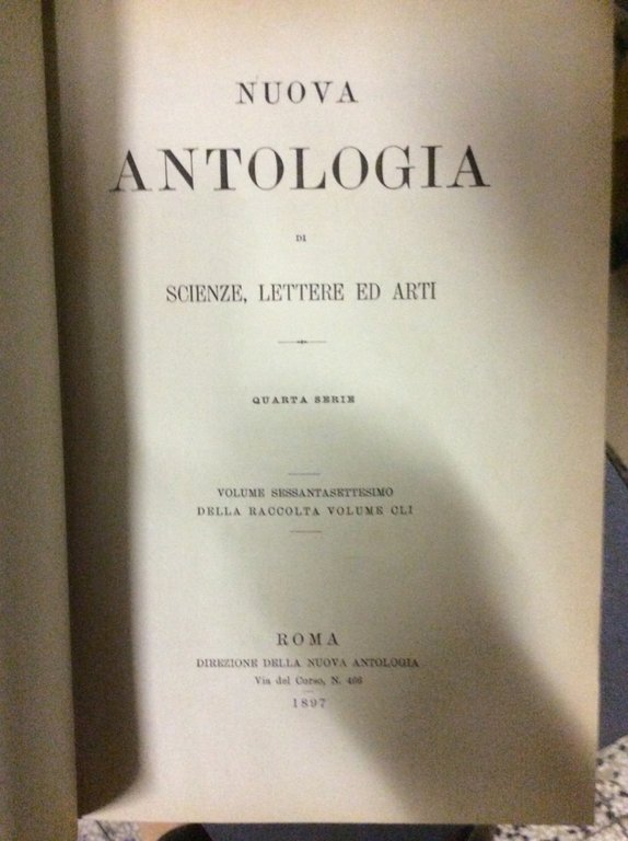NUOVA ANTOLOGIA DI SCIENZE LETTERE ED ARTI. - Quarta serie.